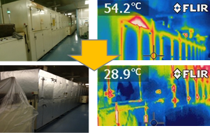 After:電気炉の表面温度が29℃に!その分、炉内に熱を閉じ込めることで25%の省エネに繋がりました!工場内の温度も3℃改善され、暑さ対策にもつながっています!