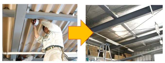 【特殊遮熱シート】折板屋根の裏側に施工!夏場の工場内温度を10℃低減!