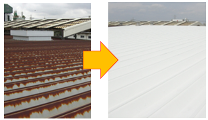 折板屋根などの金属屋根に施工することで、太陽光による熱の流入を大幅に抑制(遮熱)し、温度上昇を抑え、体感温度の低下と空調の省エネ化を実現します。